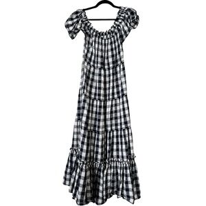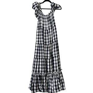 THE GREAT The Nightingale Gingham Navy Maxi Dress Sz M