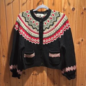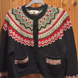 The Great holiday fair isle sophomore button down cardigan. Minor lint throughout that I will try to clean before shipment. No stains, rips, or pilling.