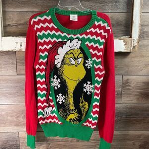 THE GRINCH Dr Seuss Women’s Ugly Christmas Sweater Red Green Holiday Size Small