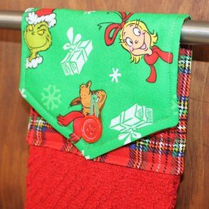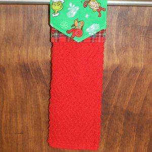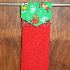 THE GRINCH PRINT RED & GREEN HANDMADE HANGING KITCHEN TOWEL RED COTTON TOWEL