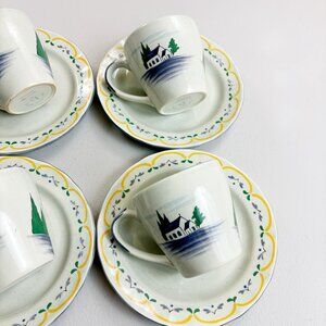 Lovely set of vintage cups and saucers by The Haldon Group. The pattern is called "Normandie" and depicts a person walking in the countryside. Gently used, no noted flaws (see photos).