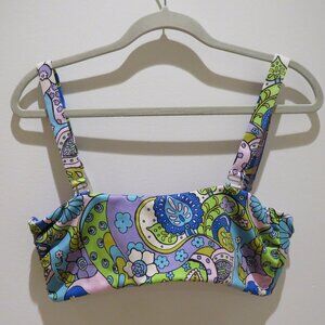 THE HIPPIE SHAKE Marcie Psychedelic Floral Bikini Top Retro 70s Swim Boho