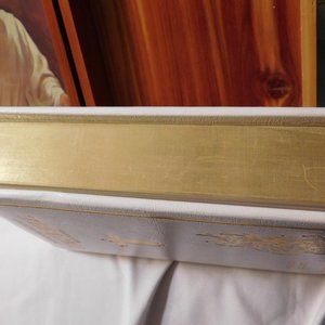 Has 1,561 pages with additional pages in the back with illustrations. The leaves are gold-gilded with a some wear to the gold.