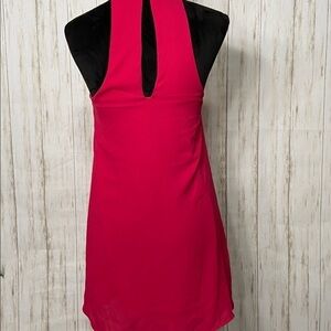 The Impeccable Pig shift dress with choker and v-neck neckline and sleeveless. Color is a great shade of pink - size xs. 100% polyester. Excellent condition.