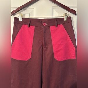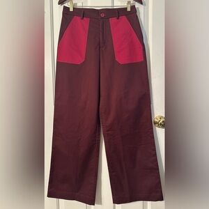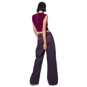 THE KIT 6 Tracee Pant Eggplant Wide Leg Hi-Waist Brushed Stretch ORGANIC Cotton