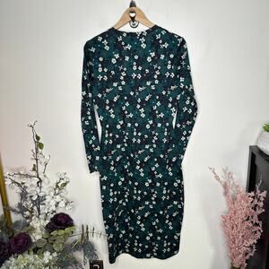 THE KIT. Midi Tee Dress Green Floral Primrose Sz M {3O7}