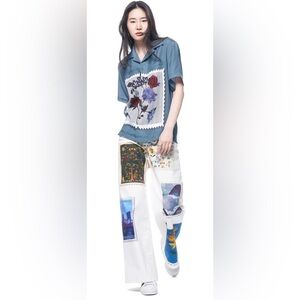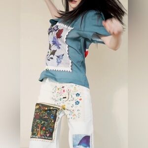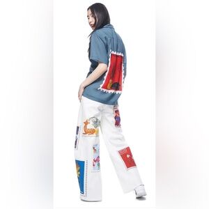 THE KIT's Nicole Jean wide-leg high-waisted denim vintage stamp patchwork baggy