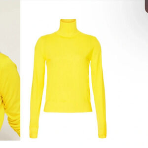 Yellow knit (100% Fine Merino Wool). Sweater. Long sleeves. Turtleneck. Pull on. 21.5" from shoulder to hemline. Imported.