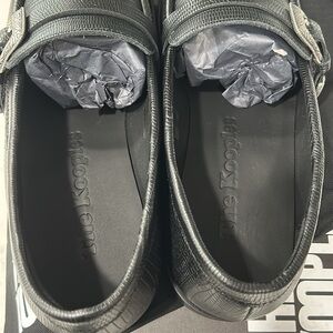 THE KOOPLES BLACK LEATHER LOAFERS WITH WESTERN BUCKLE, NWB