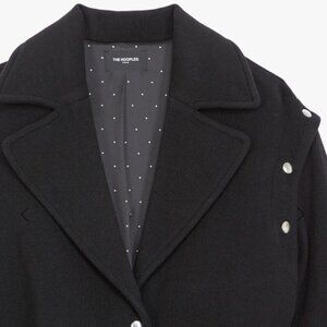 THE KOOPLES Sold Out Black wool trench style coat embellished with silver press snaps, self belt and detachable sleeves. This is a super-chic, soft, warm coat that converts to a sleeveless coat/vest by snapping off the sleeves. Perfect for fall and winter. Worn only a few times, in excellent shape (have too many black coats!) Slightly oversized fit, 2 front pockets, fully lined. French size 40, fits like a US10.