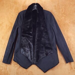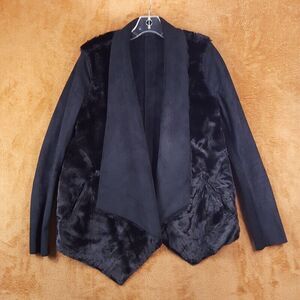 THE KOOPLES Coat Womens Size 2 Black Faux Fur Reversible Open Suede Jacket