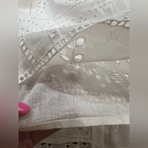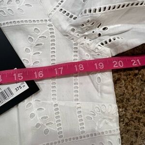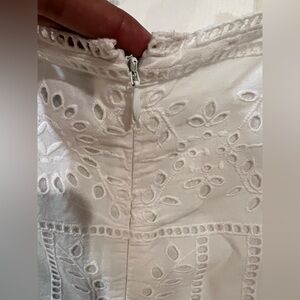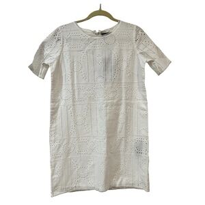 About the brand: Cool, contemporary wardrobe staples. Shift Dress in white with eyelet lace design Approximately 33 in from shoulder to hem Center back zipper with hook-and-eye closure 96% cotton, 4% lyocell Hand wash Imported