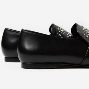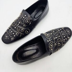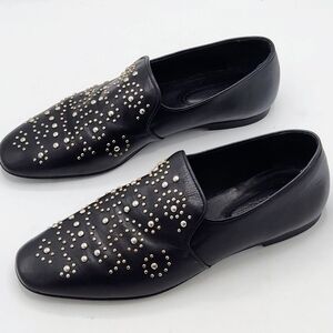 THE KOOPLES Leather Studded Loafers Western Moccasins Flats Black Retro Size 39