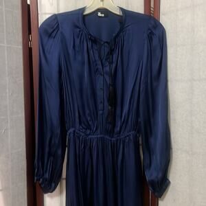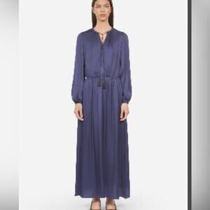 THE KOOPLES PLAIN COLOR LONG SLEEVE MAXI DRESS IN NIGHT BLUE SIZE 1 S,0 XS