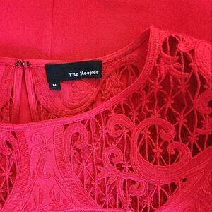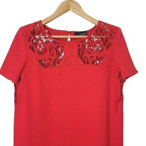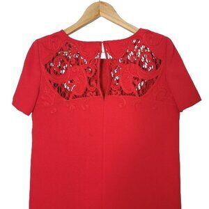 THE KOOPLES Red Short Sleeve Embroidered Lace Mini Shift Dress Women's Size M