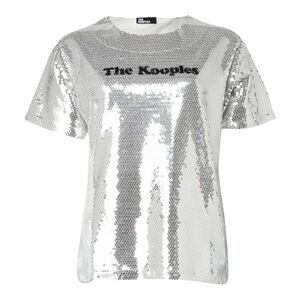 THE KOOPLES Silver sequined t-shirt, Size Large NWT short sleeve crew neck