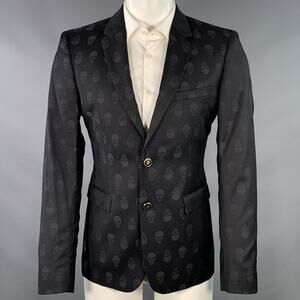 THE KOOPLES Size 40 Black Skull Wool Notch Lapel Sport Coat