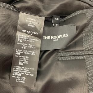 THE KOOPLES sport coat comes in a charcoal wool with a full liner featuring a notch lapel, flap pockets, single back vent, and a double button closure.