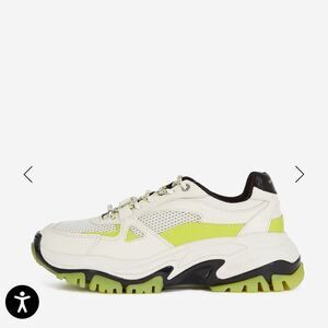 These white platform sneakers will give your urban outfits that bold finishing touch. In keeping with this season's athleisure vibe, these are technical in style with their lace fastening and black and fluorescent yellow inserts. They have a thick notched sole with a slightly rounded shape that provides extra character for when you're on the go. You can team these urban sneakers with striped suit pants, a printed T-shirt and a formal jacket