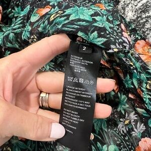 THE KOOPLES asymmetrical ruffle trimmed poppie field semi sheer blouse