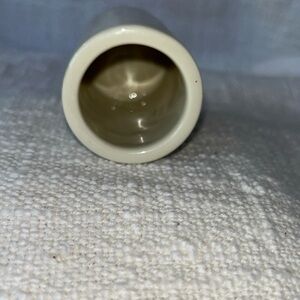 The Lenox Spice Garden Rosemary Jar is a small cylindrical spice jar made of fine porcelain, featuring a multicolor Garden theme design. Part of the 1992 giftware collection by Lenox, this collectible item does not come with a lid. With dimensions of 4" in height, 2" in length, and 1.5" in width, this spice jar is a charming addition to any kitchen storage and organization setup, adding a touch of elegance and functionality to your home.