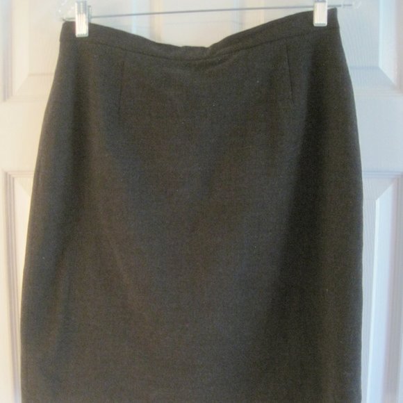 THE LIMITED DARK GRAY WOOL BLEND PENCIL SKIRT 12 $69.50. IN VERY GOOD PREOWNED CONDITION. ZIPPER IN BACK WITH BUTTON. VENT IN BACK. MATERIAL IS 63% POLYESTER, 34% WOOL AND 3% SPANDEX. LINING IS 100% ACETATE. APPROXIMATE MEASUREMENTS 32" WAIST AND LENGTH 22". I SEE A FEW TINY PIN HOLES WHEN I HOLD IT UP TO THE LIGHT. YOU CANNOT SEE THEM OTHERWISE. PROBABLY GOT HOOKED ON SOMETHING. CLASSIC STYLE! PLEASE LET ME KNOW IF YOU HAVE ANY QUESTIONS. THANK YOU FOR LOOKING!