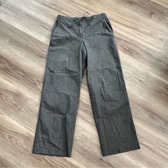 THE LIMITED Gray Pinstripe straight Leg Pant Women Size 8 in good preowned condition/ has some stretch/ waist tie, pockets