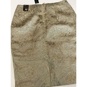 THE LIMITED HIGH WAIST GOLD JACQUARD PENCIL SKIRT