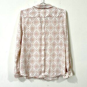 THE LIMITED LS Blouse Geometric Pink White Roll Tab Tunic Top Collared Sz L