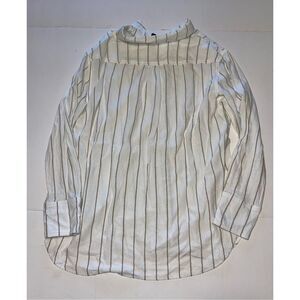THE LIMITED LS Button Up Brown Stripe Top Shirt Blouse S