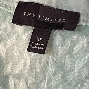 This very sheer lightweight top is a size XS by The Limited. In a gorgeous sea-foam green it’s perfect for the career girls spring/summer wardrobe. Top was very gently worn.