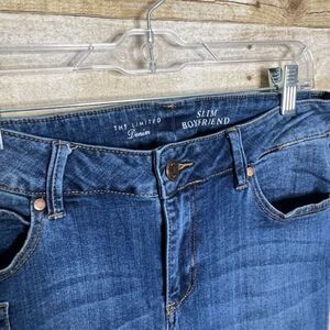 THE LIMITED MEDIUM WASH,SIZE 10 LONG, SLIM BOYFRIEND SKINNY JEANS. FEATURES PATCHWORK DETAIL AND LIGHT DISTRESSING. HAS STRETCH, FIVE POCKET DESIGN, ZIPPER FLY, AND BUTTON CLOSURE. NO FLAWS. PLEASE SEE PICTURES FOR MATERIAL TAG. OFFERS WELCOME.