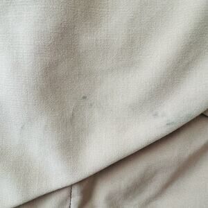 There are some very small smudge marks on the back that will in all likelihood come out. There are belt loops but no belt, easy to add one of your choice. Classic design and shape is very flattering.