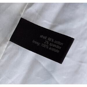 98% Cotton, 2% Spandex, 100% Acetate lining