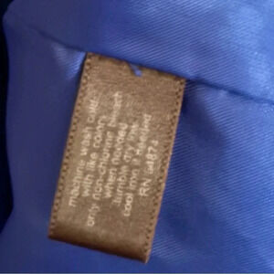 Zipper pull is missing some blue paint. Otherwise, the dress is in very good preowned condition.