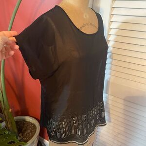 THE LIMITED | sheer front bedazzled bottom black top XL NWT