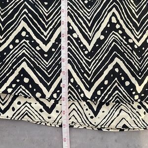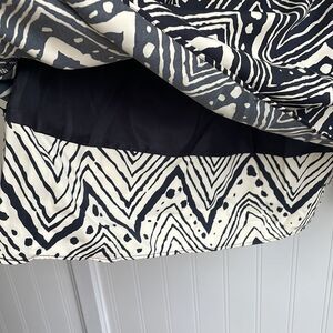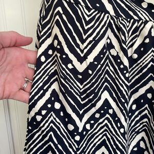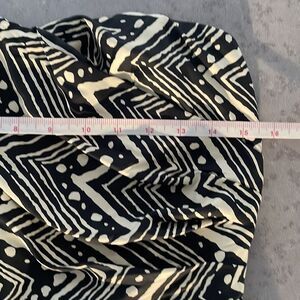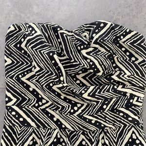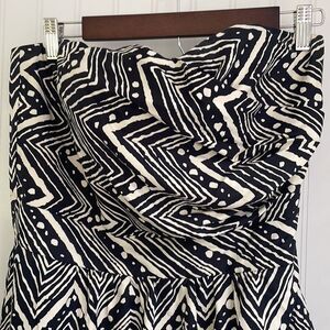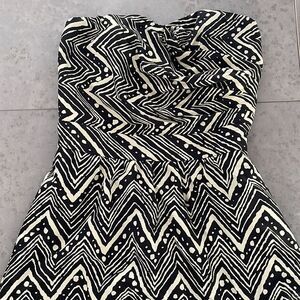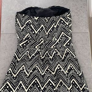 In excellent used condition! The Limited strapless dress in black and cream geometric print. Has some boning in the bodice. Zipper on the side. Bodice has ruching that gathers to the waistline at one side. The best part - it has pockets!