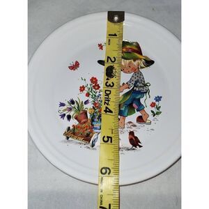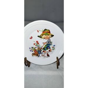 THE LITTLE GARDENER Girl Boy Flower Garden Cart Plate 6.25" No markings