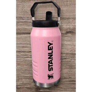 The Messi x Stanley Iceflow Flip Straw Jug is a new 64 oz jug made of stainless steel with a pink color, perfect for both hot and cold beverages.