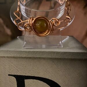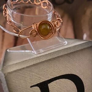 The Nile - is handmade completely of copper wire, the links are designed and hammered for a flat texture, center is a beautiful mustard orange glass bead with a figure 8 clasp. ***HANDMADE***