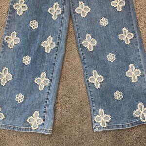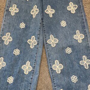 The Kaia is crafted from ultra-soft stretch denim and finished with all-over pearl and floral embroidery — a blend of softness, structure, and standout detail. The high-rise, straight-leg silhouette flatters in all the right places while feeling effortlessly modern.