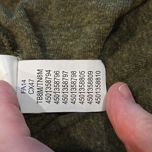 Pre-owned. Good condition. 2 button closure. Could be used as a base layer. Color is a greenish brown.
