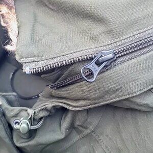 2 zip hand warmer pockets & 2 zip chest pockets on outside, + 1 zip inner pocket