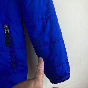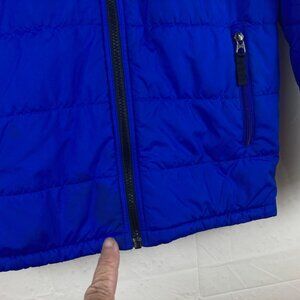THE NORTH FACE Boys 14 / 16 L Reversible Mount Chimborazo Puffer Jacket Blue Black Full Zip With Logo on Front and Back.