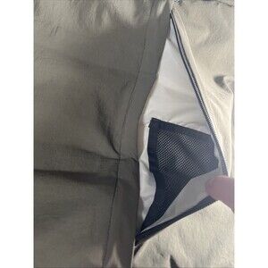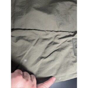 This is a great water resistant North Face zippered puffer bag in army green. Its in fantastic condition with two small spots in the front/bottom of the bag. Ill leave cleaning to the new owner!