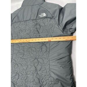 This great TNF (The North Face) ladies jacket is in very good condition as shown in the photos. Gray/Silver color with white stitching in a lotus flower pattern is beautiful and unique!