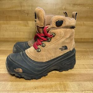 THE NORTH FACE Chilkat Lace Up Boots size 1Y Mud Pack Brown Orange (NF0A2T5R) good condition light wear