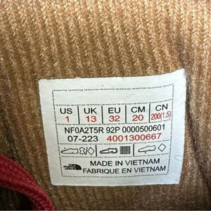 THE NORTH FACE Chilkat Lace Up Boots size 1Y Mud Pack Brown Orange NF0A2T5R