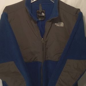 Size XL (18) Boys - The North Face Denali Fleece Jacket has functional zipper front closure and functional pockets in the colors blue and gray in preowned good condition