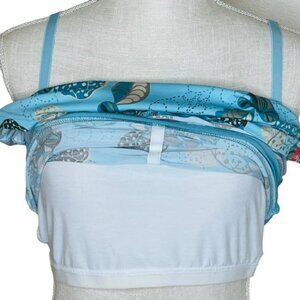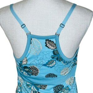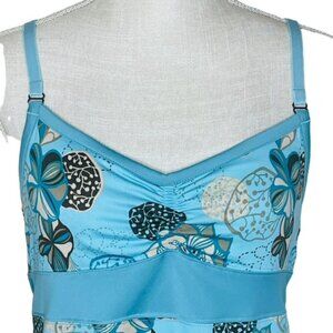 • Aqua blue floral tank top with adjustable spaghetti straps